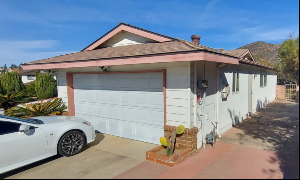 The garage was converted into a tiny living room plus a tiny kitchen.