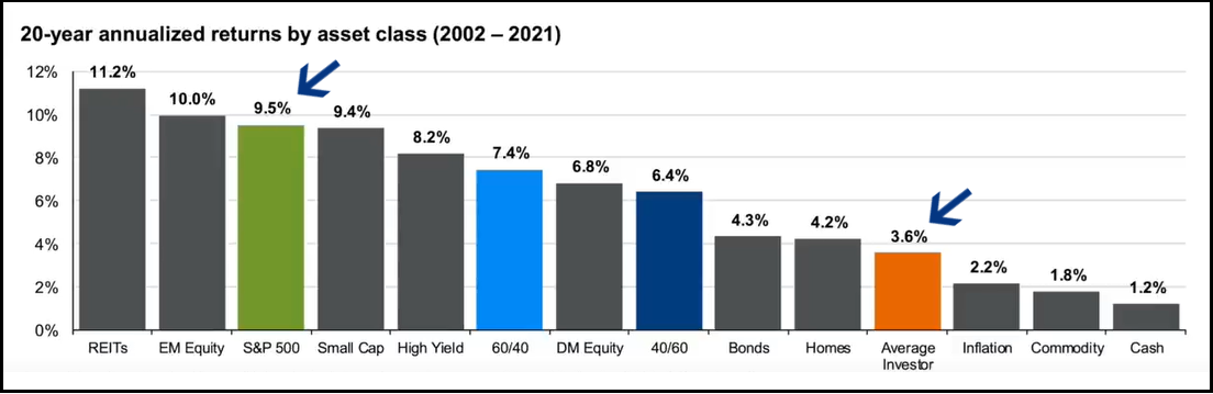 Does worse than the average investor simply investing in an S&P500 Stock Fund.