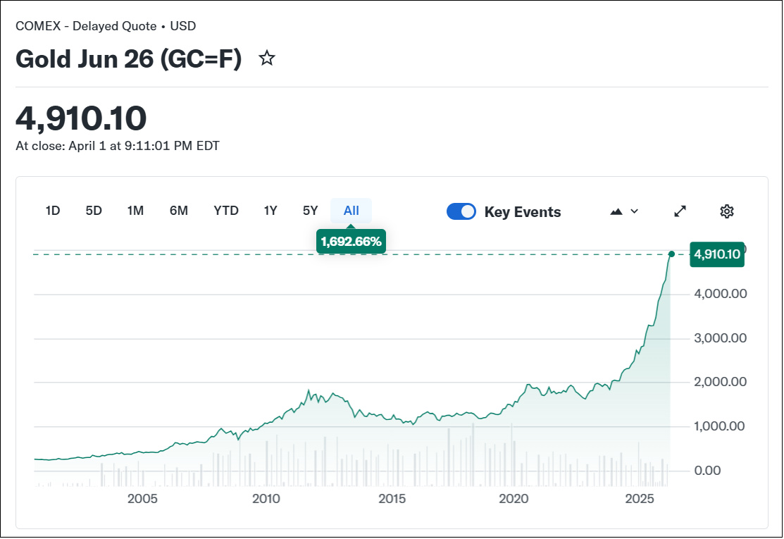 A $300 ounce of gold bought 30 years ago is now worth almost $5,000 today.