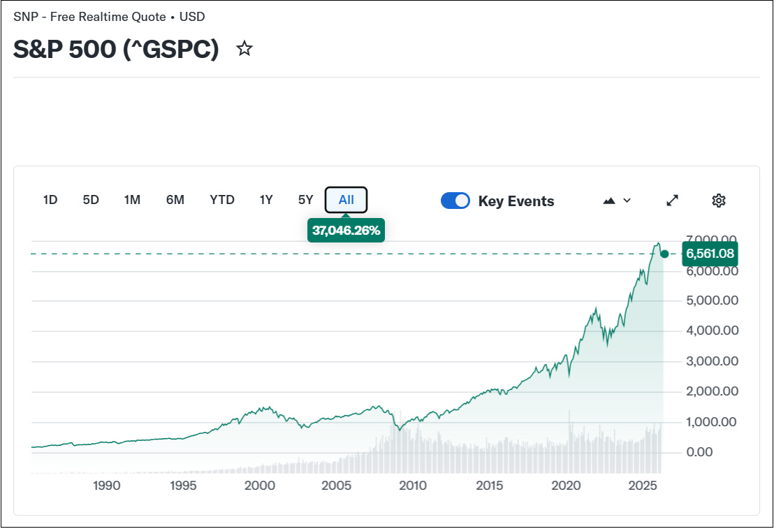 $100 invested in an S&P500 Stock Fund 30 years ago is worth almost $2,000 today.