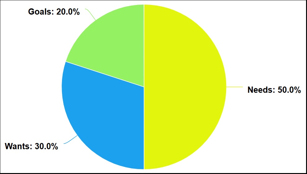 - 50% Needs (food, rent, etc)