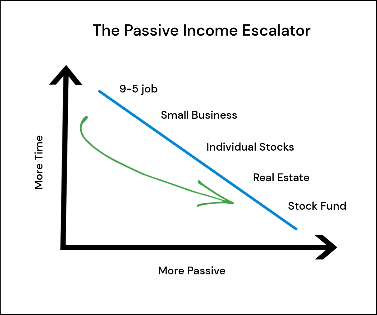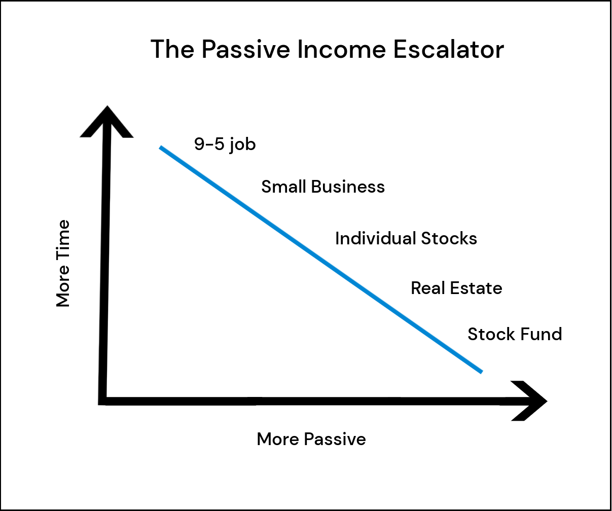 A 9-5 job is the least passive way to make money. Not working means not getting paid.